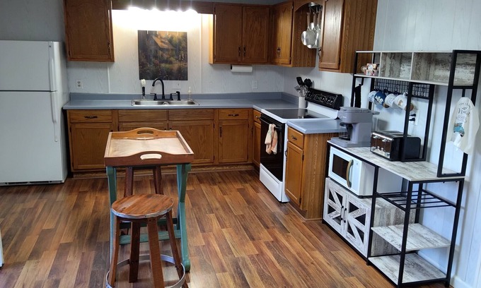 Discover this lovely farm in Hanson. This 1-bedroom with additional Futon retreat offers heating, AC, WiFi, and a washer/dryer, full kitchen amenities for your convenience. Step into a delightful space where you can unwind in the country and relax after a day of exploring. We hope you enjoy what our place and Hanson - Madisonville(Best Town on Earth) has to offer. We 2 hours from Mammoth Caves or 1.5hours from Nashville, and lots to do here in town with Madisonville City Park, Mahr Park, and Madisonville Sports Complex just a 15 minute drive. If you aren't in to driving around and want to relax, drink a beverage on the patio taking in the view, or take a hike through the 34 acres of woods with many trails cut to explore, foosball and plenty of yard games available! Not to mention the cutest goats in all Kentucky to adore!