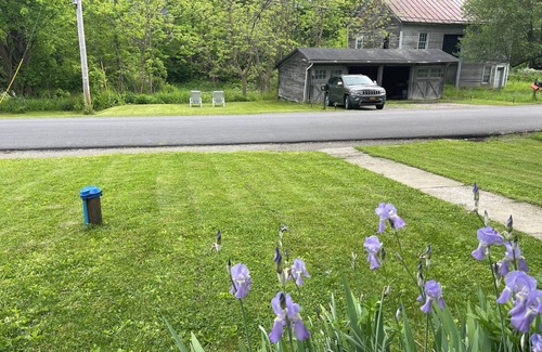 Steps from a bustling creek and waterfall. This cottage is perfect for anyone coming to the area! Stocked with guest exclusives: snacks, drinks, extra towels, soaps, books, seasonal candles/decorations, kitchenware, linens, pillows, an adjustable bed, yoga mat, board games and a Smart TV with hundreds of free channels and movies from various apps like Pluto, Tubi, YouTube. This rental is the “Right-Side Unit”, private and two floors. In bedrooms, mattresses are new (used only by guests). The backyard is huge! Play catch, kick a ball or try out any of the outdoor games found in the sun room. WiFi is lightning fast and reaches all over. Cottage is located in a booking- friendly neighborhood and just off the highway. You are literally at the center of Dutchess County.