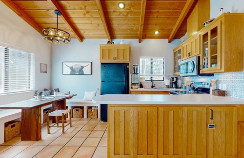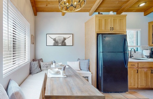 The house features a well-equipped kitchen with everything you need to prepare delicious meals, a comfortable living room with a TV for movie nights, and a peaceful patio with mountain views where you can relax and unwind. The property is family-friendly and offers an enclosed yard for kids to play in.