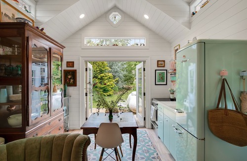 Experience Richmond like a local in this cozy 1-bedroom Guesthouse in Historic Bon Air Va. Guests can relax in the living area and prepare meals in the full kitchen. Climbing up to the loft reveals a comfortable queen bed. The full bathroom offers a stand-up shower with everything you need. There's an extra twin size daybed for added comfort as well. Enjoy the spacious covered porch and swing along with an outdoor firepit, gas grill and sitting areas.