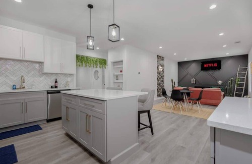 This modern 2-bedroom apartment styled basement in Braselton, GA, offers a unique jungle theme with smart TVs in every room. Located just 5 minutes from Road Atlanta and Chateau Elan, and 15 minutes from Top Golf, it’s perfect for couples or small groups. Enjoy fast Wi-Fi, a cozy firepit, and nearby dining options. Whether you're here for a race weekend or a relaxing getaway, this home provides comfort and convenience for a memorable stay.