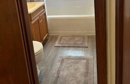 Two bedrooms on main level with a bath between them. King & Queen mattresses. Kitchen with the items needed to bake cookies or prepare a wonderful meal. Comfortable living room with a large smart tv- just login with your steaming service and you're good for the evening. Upstairs is a large bedroom with a king size bed and full bathroom. Washer and dryer are in basement.