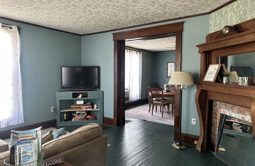 Step back in time with this charming and historic 3-bedroom, 1-bathroom guesthouse. Thoughtfully furnished and comfortably appointed, it features a cozy living room, a dedicated dining area, and a fully equipped kitchen perfect for longer stays. Two bedrooms and the full bathroom are conveniently located on the main level, with a third bedroom tucked away upstairs for added privacy.
