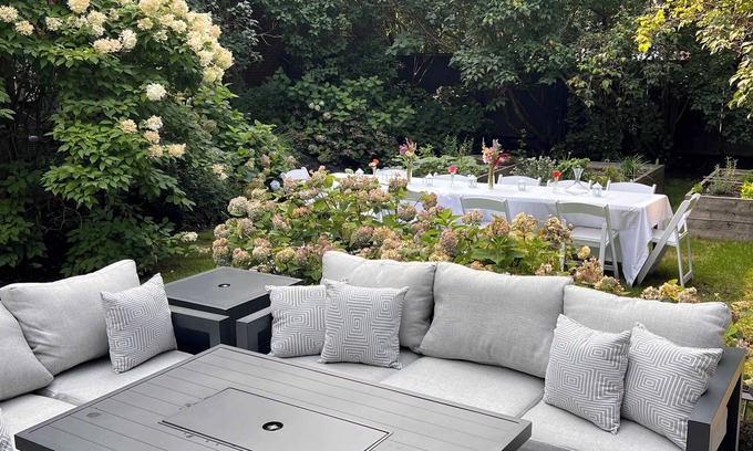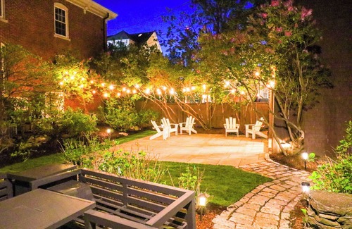 Outdoor Living & Seasonal Entertaining : Step outside to a private backyard oasis with a stone patio, outdoor seating, and a gas grill—perfect for unwinding after a day exploring the city. At the rear of the property, a restored antique carriage house offers a unique space for private dining and intimate group events. **Please note the carriage house is available from April - December and does have an additional fee for use Use of the home and carriage house is limited to registered overnight guests, but we do welcome approved small gatherings or special events with advance notice. Please inquire about event rates and services.
