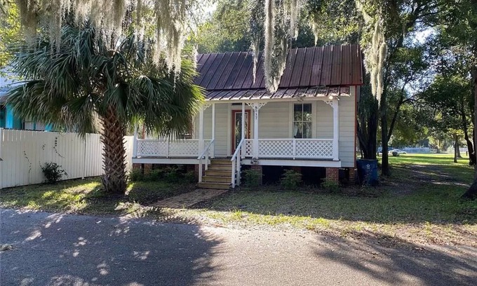 Southern Living!!! Cozy historic cottage in Brunswick Historic SoGlo District, south of GLOUSTER in the downtown area. This charming home has two bedrooms one bath, with creative use of space and storage. Open front sitting porch, with an additional large gated side porch, great for sunbathing, gatherings, cookouts, and more... this unique cottage is adorable, quaint, clean, and full of character! This home is over 140 YRS OLD. Don't miss out on a great opportunity to stay close to downtown with fabulous eateries, shopping,, breweries, distilleries, and much more! This wonderful home also has a beautiful historic park in its own backyard. We have private parking in the back and front of cottage. If visiting with a Pet(dogs only), they are not allowed on furniture of any kind.. We look forward to your having you!