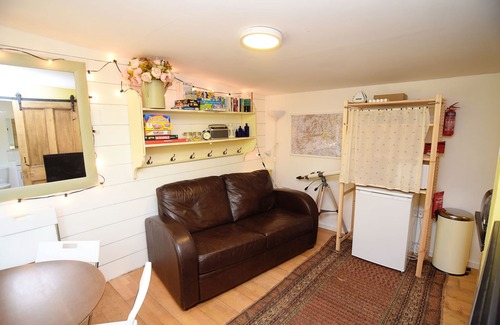 The Old Greenhouse is a detached purpose built holiday home in the beautiful Cotswold hillside village of France Lynch. Built on the site of our old greenhouse it has it's own private fenced off area and deck within our lovely three quarter acre garden. Next to The Old Greenhouse there a cosy fire pit hut to roast marshmallows or just relax with a drink. There is a lovely double ensuite bedroom with the option of adding an extra fold out bed if needed. The kitchen diner includes a double sofa bed, plenty of board games and books, a Tassimo machine (bring your favourite pods with you), fully fitted kitchen with dishwasher and Sky TV with all the sports and movie channels. There are plenty of walks right outside the door, and a charming pub is just a few minutes walk away. The neighbouring village of Chalford has a further 2 pubs, community shop, a lovely bakehouse with coffee shop and a chippy at The Old Neighbourhood pub. Stroud, (with it's award winning farmers market), and Cirencester are a short drive away. Tetbury, Nailsworth, Painswick and Westonbirt Arboretum are also nearby. Cheltenham and Gloucester are 30 minutes by car. London is two and a half hours by car. We offer a laundry service if needed and can provide a meal of your choice (at extra cost) ready to heat up upon your arrival. Within a 5 minute drive, Tesco Express, petrol station, Chinese take away, chemist and a selection of local parks.The garden is open for our guests to enjoy, feel free to help yourself to our herb garden. Marshmallow sticks together with a free bag of marshmallows can be toasted on the fire pit. Our friendly Welsh Springer Spaniel always likes to say hello. We have his and hers mountain bikes and helmets which you are welcome to use. There is an allocated parking space for one car, other parking is available outside our house.