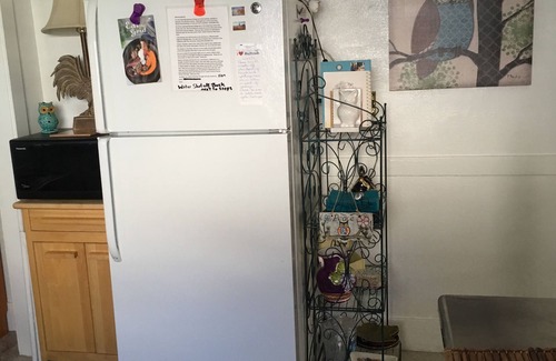 Sit on the porch with your coffee or cook up a meal in the fully equipped kitchen, gas stove/oven, microwave. Your every need has been anticipated in this home. Enjoy the comfort of central heat and air. Keep up with your laundry with our clothes washer and dryer. The two bedrooms have queen size, super comfortable beds, full closet’s, chest of drawers, and ceiling fans. Bathroom has a tub/shower combo. Back patio has a sunshade and misters to relax under while you wait for your barbecue meal to cook. Small festive lights are on a timer for evening ambiance.