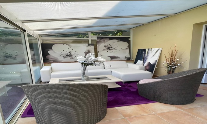 Nestled in the peaceful village of Saint-Pavace, just minutes from Le Mans, this charming home offers a cozy and convenient escape for families or small groups. With its bright interiors and tranquil surroundings, the house is perfect for those seeking a relaxing stay close to nature and city attractions. Whether you're visiting for a weekend getaway or a longer retreat, this welcoming space provides all the essentials for a comfortable and memorable stay. The home features two thoughtfully arranged bedrooms, comfortably sleeping up to seven guests. A fully equipped kitchen allows you to prepare meals with ease, while the dining area and sunlit veranda offer inviting spaces to gather and unwind. The living room is ideal for relaxing after a day of exploring, and the outdoor terrace provides a peaceful spot to enjoy your morning coffee or evening breeze. Fresh linens, towels, and modern amenities ensure a hassle-free experience from the moment you arrive. Enhance your stay with personalized services from the Rêve au Mans concierge, including breakfast delivery, catering, private driver, and even in-home massages. Located just a short walk from a leisure park and a quick drive to family-friendly attractions like Gulli Park and CGR Cinema, the home is perfectly positioned for both relaxation and adventure. Whether you're here for the Olympic excitement or a quiet countryside break, this serene retreat offers the best of both worlds.