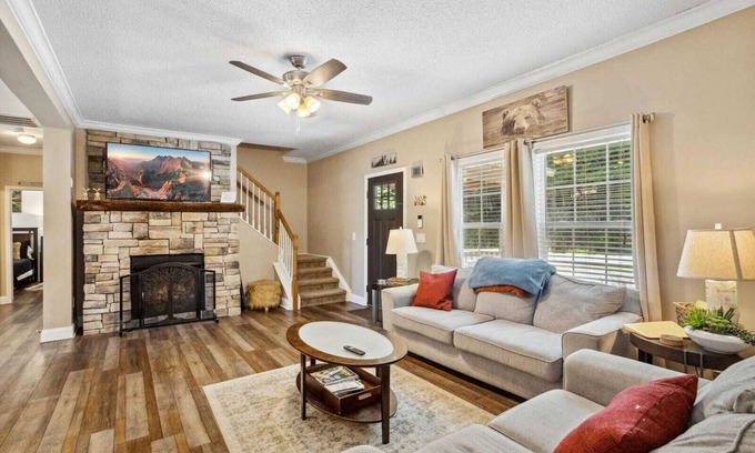 Versatile Gathering Spaces: The open-concept main level boasts a great room that serves as an inviting area for guests to mingle and relax. Additionally, a large den with a game room downstairs allows for fun and entertainment, making it easy to create lasting memories together.