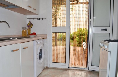 Just a short walk from a gorgeous, sandy beach, this charming vacation home is in the heart of San Foca, which is a short drive from Torre dell’Orso on the Adriatic coast, and impresses guests with its spacious, relaxing outdoor area. The holiday home with a welcoming, cosy atmosphere consists of a dining room, a spacious kitchen with access to the terrace, 2 bedrooms (one with a double bed and one with 2 single beds) as well as one bathroom and can therefore accommodate 4 people. Additional amenities include a washing machine and a television. Air conditioning is available in the living room. Prepare delicious meals to enjoy together on your spacious, partially-covered terrace, which is equipped with a table and chairs and surrounded by a garden full of native plants and trees. On the other side of the house, you can start the day with a fresh cup of coffee in the outdoor lounge area and savor a glass of wine in the warm evenings. Due to its exceptional location, you can reach a variety of restaurants, bars, supermarkets, and gelaterias as well as the historic tower and promenade along the harbor within an 4-minute walk. Furthermore, the beautiful, sandy beach Spiaggia Le Fontanelle is only 450 m or a 6-minute walk away. Here you can sunbathe below the warm, Italian sky and refresh yourself in the Adriatic Sea.