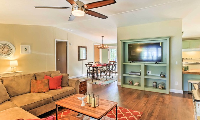 A fun-filled lake retreat awaits at this charming Pottsboro vacation rental! With accommodations for up to 6 adults and 4 kids, this 3-bedroom, 2-bath home is perfect for families seeking a place to relax together. Dive into water adventures at Mill Creek Marina & Resort on Lake Texoma, fish for bass at Eisenhower State Park or drive bulldozers at Extreme Sandbox - all minutes from the property! After your daily adventures, head home to grill out on the back deck surrounded by beautiful trees.