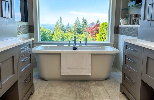 Salish Peaks Escape is nestled on the side of sloping hill and overlooking where the ocean meets the Salish Peaks. Thoughtfully designed for larger groups but limited to 12 people across 2 guest rooms with no more than 4 adults by Nanaimo By-laws. All the amenities of the city are within reach, yet far enough away to provide a private stay. Enjoy all that the Harbour City has to offer from pristine beaches to a vibrant downtown. Experience it to believe it, and make this your next destination.