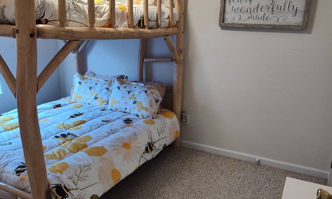 Enjoy a country escape with this 3 bedroom, 2 bath (4 beds, sleeps 8) beautifully decorated cozy home. Guests have access to the entire property via keyless entry. High-speed internet, 2 WiFi Smart TVs, 2 desks, fully furnished kitchen with appliances, Keurig and drip coffee makers, washer, dryer and other amenities will ensure your stay will be extra special. The 2 bathrooms come equipped with towels and a hair dryer for your convenience. In the back field and within view are the honey bees hard at work. You will see other animals too. Let it bee and educational vacation!