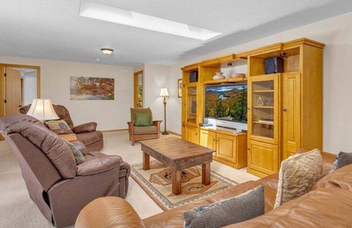 Welcome to 15 Lassen Ln at Sunriver Resort in Oregon! This warm, sprawling single-level home comfortably accommodates up to ten guests, making it perfect for families or groups seeking a stylish getaway. Enjoy cozy evenings by the stone fireplace in the main living room or unwind in the family room with a movie. The home features two spacious master suites with king-sized beds, one of which includes a dedicated office space. There's also a king bedroom and a bunk room for four children.