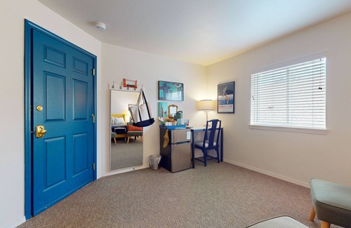 This room location is perfect for the traveler who likes a quiet sleeping environment or wants to crack a window and wake up with the gulls! With a spacious living room, a lavish bathroom, and a dining area with a mini-fridge/freezer, this space provides guests with elevated comfort for their stay.