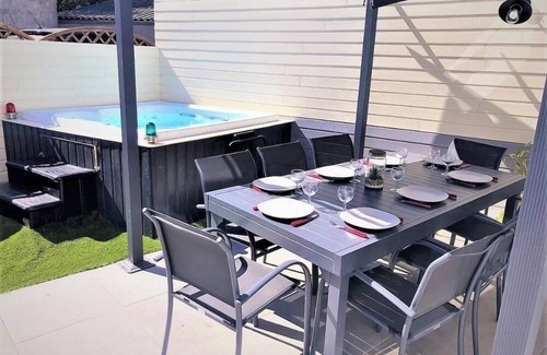 Charming house 2 steps from the ocean with Spa is located in Nevez. Charming house 2 steps from the ocean with Spa provides accommodation, featuring Designated Smoking Area, Private Pool, Balcony/Terrace, among other amenities. This House features Designated Smoking Area, Private Pool, Balcony/Terrace, to make your stay a comfortable one.