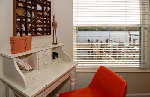 The Dock: Walk a few steps out the back door to get a closer look at the boats slowly motoring by or cast a line and catch fresh fish for dinner. The dock has a built in bench along with portable table and chairs which make it a great place to fish, eat, read and relax while taking in the view. In the cooler months, open up the sliding door to enjoy the refreshing ocean breeze throughout the house.