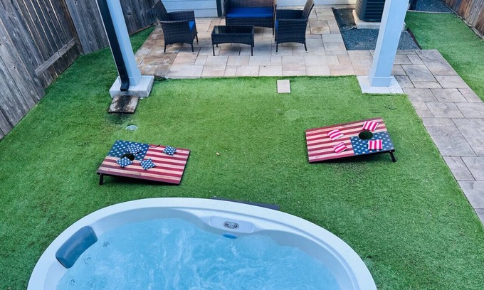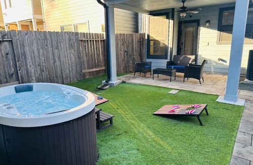 Unbeatable central location within minutes from all Houston has to offer. Walk to bike/hike trail, best restaurants, cafes, entertainment places and grocery stores in the Houston Heights area. Private, charming and cozy 3 Bed + 2.5 Bath independent house with hot tub, fenced backyard, game room, amenities. Family, large group, pet friendly. Essentials included. High speed internet. Full kitchen with coffee maker, utensils, dishes, refrigerator, smart TV, living room, furnished outdoor patios.