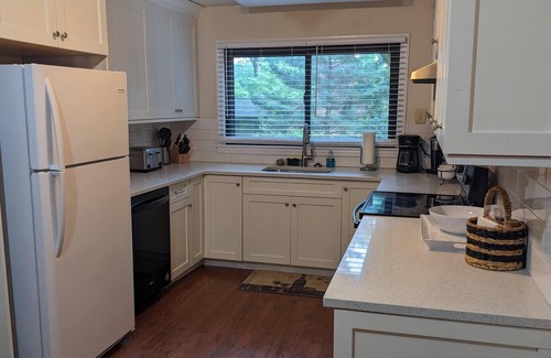 You will enjoy making meals for the whole family in the recently remodeled kitchen with brand-new countertops, appliances, and big windows. Stretch out in our recently remodeled bathrooms, complete with a tiled, walk-in shower in the master suite. Check-in is easy and secure with keyless entry, and there is plenty of off-street parking for guests.