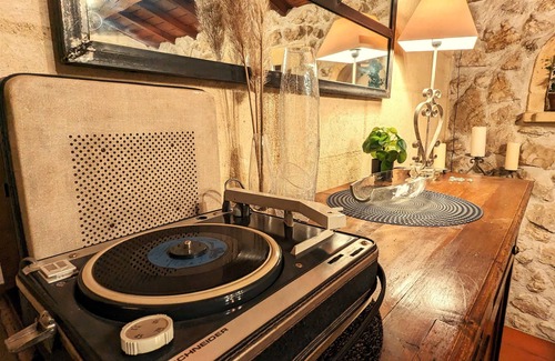 - Large living room of 40m² with a charming stone chimney, lounge with corner sofa, DVD/USB reader, laptop computer, film collection and amplified sound system (jack socket to plug an mp3 player, phone or tablet to listen to music).