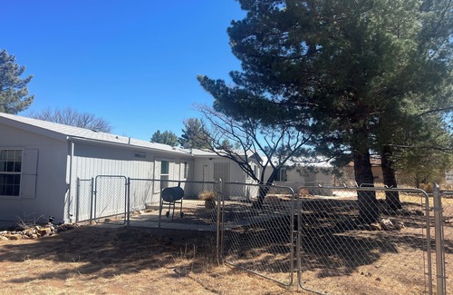 Escape to this charming house in picturesque Hereford, nestled against the Huachuca Mountains. This quiet, cozy retreat features one bedroom with a queen bed, one bathroom and a dedicated home office room, perfect for couples and remote workers. Enjoy the back patio with gorgeous mountain views and look for the different types of hummingbirds. With amenities like a fully equipped kitchen, spacious dining area, comfortable living room, high speed Wi-Fi, central heating/AC, outdoor space, and a washer/dryer, your stay will be comfortable and convenient. We look forward to hosting you at our place!