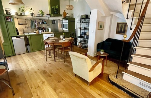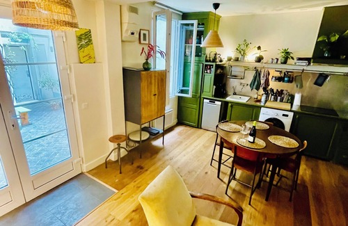 The house is on two floors with a large luminous glass roof. On the first floor, in our kitchen/dining room, you will feel like in the countryside in the center of Paris. On the second floor, a bedroom with a very comfortable sofa bed, a convertible armchair, a single bed and a bathroom with bathtub.