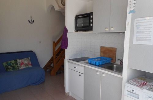 RENTED T2 air-conditioned villa with private garden surrounded by a hedge guaranteeing tranquility and private parking space in front of the house. 48m2 terrace, garden furniture (chairs, table, large parasol, sunbeds and barbecue).