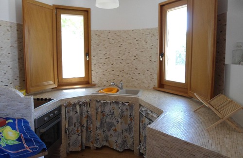 This holiday apartment in the Gargano is equipped with TV, washing machine, dishwasher and crockery.