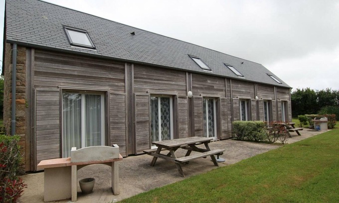 Semi-detached house to another rental. Ground floor: Living room with kitchenette. 1 bedroom (1 double bed). Shower room. WC. Upstairs: 2 bedrooms (2 single beds in each). TV. Dishwasher. Sheets and towels not provided. Shared laundry room (washing machine tokens €5 and tumble dryer €4). Baby equipment on request. End-of-stay cleaning service available at an additional cost. Electric heating at an additional cost charged at the current rate. Shared unfenced grounds. Terrace. Garden furniture. Barbecue. Pétanque pitch. Parking. No arrivals after 6 [hidden] Wifi available around the reception area/activity room. Cleaning deposit required on site. As close as possible to a very exotic dune massif (protected area), this village is ideally located at the entrance to the Hague peninsula, near the GR223. Fixed barbecue on the terrace. A playground and a sports field are located nearby.