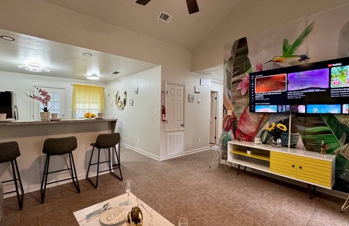 This spacious home features three inviting bedrooms, including a luxurious king-sized bed, a cozy queen-sized bed, and a triple bunk bed that can accommodate up to eight guests. You'll find two full bathrooms to ensure convenience for all, while the expansive living area provides a warm atmosphere for gatherings. Entertain with ease in the fully equipped kitchen, and enjoy quality time in the large open living room complete with smart TVs and comfortable seating. Plus, indulge in some friendly competition at the foosball game table, perfect for pre-wedding celebrations or family get-togethers.