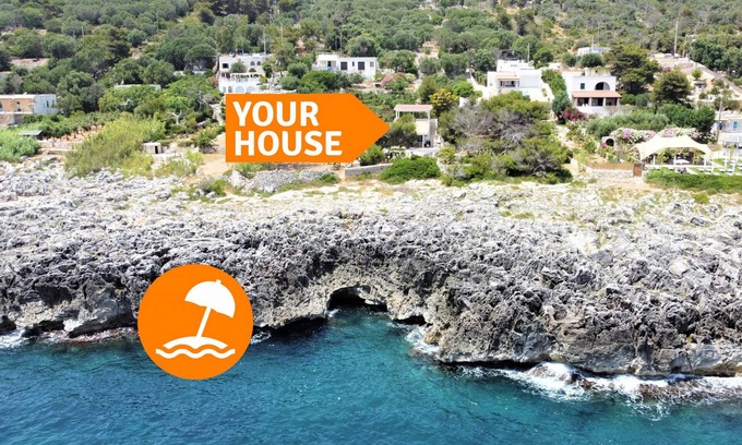 This is the closest house to the sea on this stretch of coast, a few hundred meters from the famous Cala dell'Acquaviva, perhaps the most stunning bay in Salento, a natural fjord of enchanting beauty.