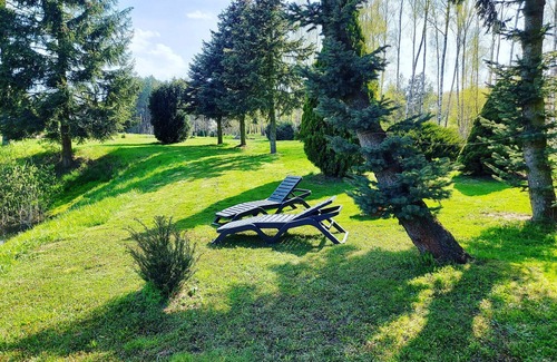 Siedlisko Witaszyn is a beautiful house NEAR WARSAW (1 hour) with interiors in wood located on the area of 2.7 hectares with a garden, forests: birch, larch spruce and two ponds with fishes. The whole area is at your disposal! The possibility of creative spending time in the bosom of nature with children. Peace and quiet just 1 hour from the center of Warsaw! Great for families ! 10 min by car sand beach!