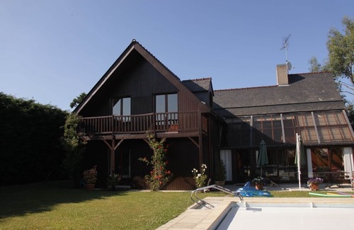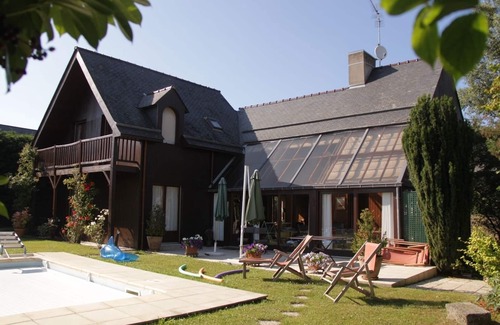 It is a pretty wooden house full of charm with a swimming pool facing south. It is located in the center of the village, is surrounded by a garden with trees and is not overlooked. It is close to the sailing center. This charming house includes: 5 bedrooms and 3 bathrooms. Parking is possible on the property with a garage in the basement. La Richardais is located on the banks of the Rance, very close to Dinard and Saint-Malo. It is the ideal place for a family vacation.