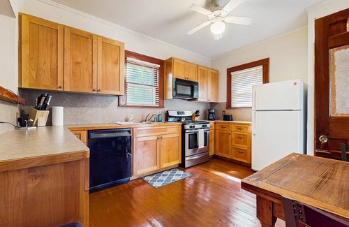 Unwind on the front porch swing with a cup of coffee, watching the trains pass by and admiring the iconic windmill gifted to Buda by the Garison family. With cable and Netflix streaming available, you can enjoy cozy movie nights after a day of exploration. Please note that the home is located near train tracks, so occasional noise may occur. Whether you’re visiting with friends, family, or children, the Garison House promises a peaceful and memorable stay in this enchanting historic district.