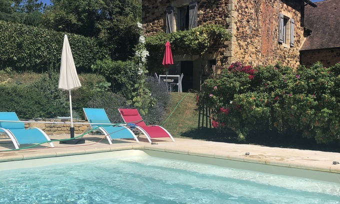 Charming house with private heated pool and 2 bedrooms, Dordogne, Sarlat is located in Cenac-et-Saint-Julien. Charming house with private heated pool and 2 bedrooms, Dordogne, Sarlat provides accommodation, featuring Barbecue/Outdoor Cooking, Internet, Kitchen, among other amenities. This House features Barbecue/Outdoor Cooking, Internet, Kitchen, to make your stay a comfortable one.
