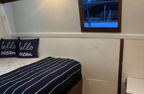 Get ready to relax in this 1-bedroom boat in Sanford. This wonderful and serene property offers heating, WiFi, a washing machine, and AC for your comfort. We're happy to assist with any questions while you stay at our boat.