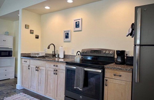 Charming attached in-law apartment in scenic Blue Hill, featuring one bedroom, one bath, full kitchen and private entrance. This in-town apartment is walking distance from art galleries, the library, a coffee shop, restaurants, a great book store and other shops, and the town park. It's a short drive to hiking trails and water access, a grocery store and a food co-op, and just 50 minutes to Bar Harbor and Acadia National Park.
