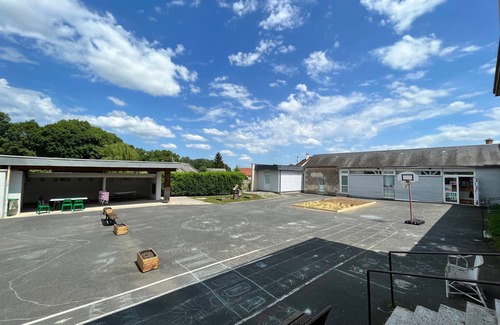 In the former communal school, independent gite with a terrace and access to the schoolyard outside school hours. Large car park on the church square with direct access to the gîte.