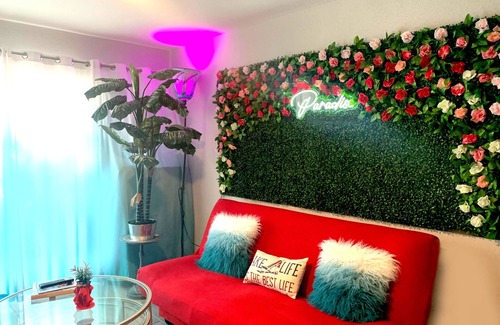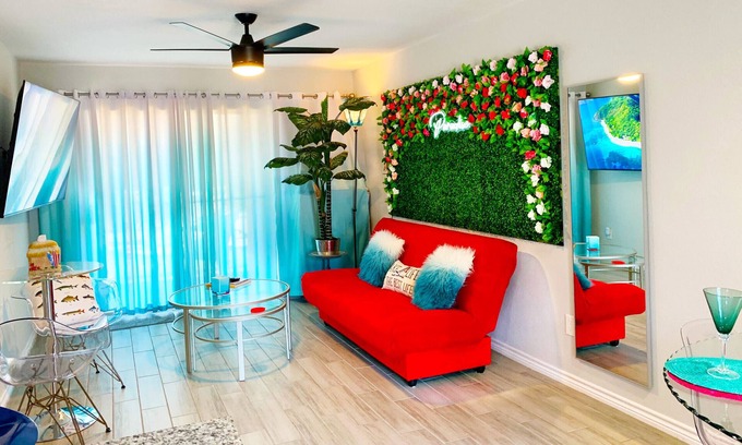 This delightful condo offers a wealth of amenities designed for comfort and ease. You'll find a super comfortable king-sized bed, a sleeper sofa, and additional sleeping arrangements, making it suitable for both couples and groups. The fully equipped kitchen allows you to prepare meals with ease, while the two smart TVs keep everyone entertained. Enjoy the swimming pool just outside your patio door, or unwind in the cozy living space that includes fast internet, an office desk, and everything you need for a longer stay—perfect for your wedding weekend preparations!