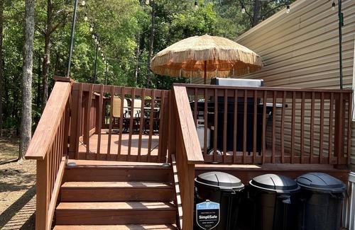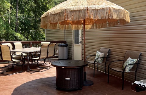 Come back to grill out on the private back deck with string lights to brighten the night, enjoy the fire pit and large outdoor table to have dinner or card games with friends and family.