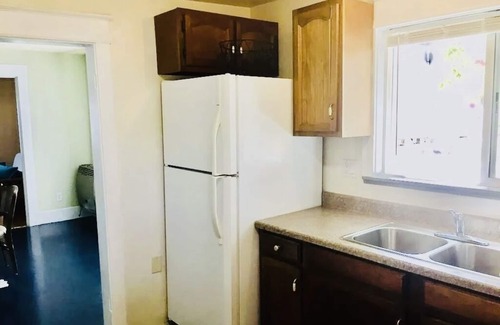 This charming 1930s house rental is for the main level of house. This includes two bedrooms, one with a bunk bed to sleep two and the other with a full bed to sleep two more.