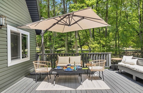 Charming/Lake/Kayak/Firepit/Hot tub/Pets is located in Briar Crest Woods. Charming/Lake/Kayak/Firepit/Hot tub/Pets provides accommodation, featuring Balcony/Terrace, Wellness Facilities, Barbecue/Outdoor Cooking, among other amenities. This House features Balcony/Terrace, Wellness Facilities, Barbecue/Outdoor Cooking, to make your stay a comfortable one.
