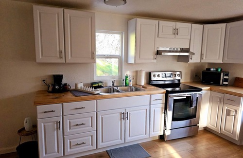 Welcome to this charming house in Clearlake Oaks. This beautiful property features 2 cozy bedrooms with queen beds, a well-equipped bathroom with a hairdryer, and all the essentials for a comfortable stay. Guests can relax in the lovely living area, take advantage of the WiFi, or enjoy the fresh air in the outdoor space. Whether you're looking for a peaceful retreat or a home base for exploring the area, this wonderful house has everything you need. Located just 3 mins drive from the Clear Lake Oaks public boat launch, this home offers convenience and comfort. Enjoy the kitchen's butcher block counters and laminate flooring, along with indoor laundry hookups. This property is set across the street from lake to maximize your views. Your family will be close to everything when you stay at this centrally-located place. Enjoy your time in Clearlake Oaks at our house.
