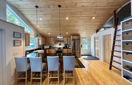 Features a 55" flat-screen smart TV (where you can connect to your favorite app), Wifi internet, board games, Washer & dryer, whole home generator, hair dryer, 2 kayaks, and paddle board.