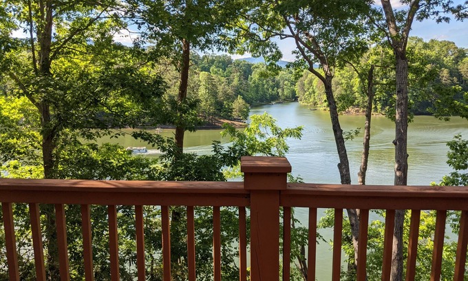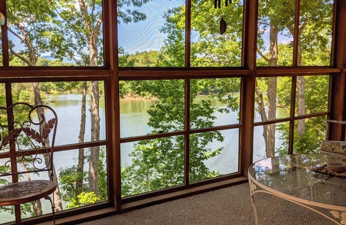 This charming lakefront wood cabin is nestled in the Blue Ridge Mountains on beautiful Lake Adger.