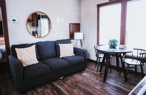 In our tiny cabin, you'll experience all the amenities of a home, including a full kitchen and WiFi. Firepits, picnic tables, store and restaurant onsite for your convenience.