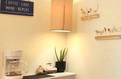 Spacious Dining Area: Enjoy meals at a spacious, woody dining table that seats six. Handcrafted decor adorns the walls, creating a warm and inviting ambiance. A cozy coffee station with a coffee machine ensures you can enjoy your favorite brews at any time.