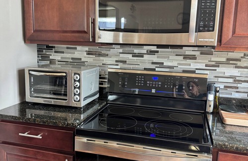 darkening blinds. The kitchen is fully loaded to include espresso bar, kurig or regular coffee makers, waffle maker, blender, mixer, vitamix, baking supplies and more. There is a crib, recliner, changing table & high chair for little ones.