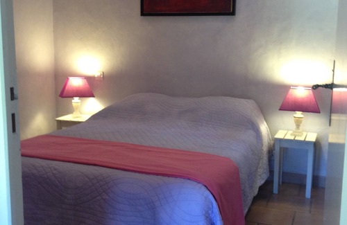 In a Provencal farmhouse from the 18th entirely renovated with respect for style, a bedroom, shower, wc, fitted kitchen area, lounge area, pergolas and large private green area, shared swimming pool access.