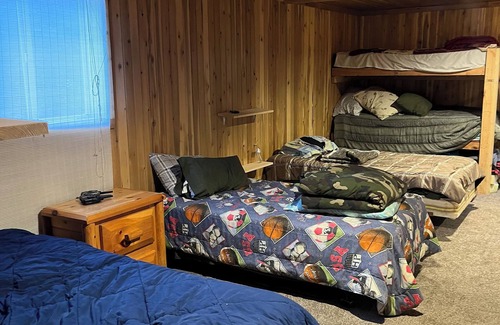 Consider this lodge your home away from home while you visit Millersburg. This lovely property features 1 cozy very large bedroom that has 7 beds, perfect for a relaxing stay. With amenities like AC, WiFi, and a washing machine, guests can enjoy all the comforts of home. We look forward to welcoming you to our charming retreat. Large game room, with large screen tv and fooseball table,nice relaxing covered porch and close to multiple good fishing lakes, golf courses,and 1/4 mile from snowmobile trail
